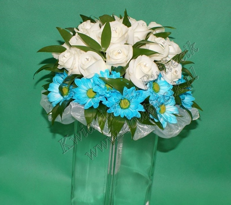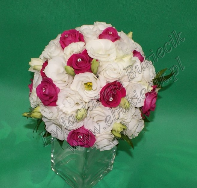 czwartek, 25 września 2014- Centralny duży bukiet z białej eustomy wraz ze wstążkami.