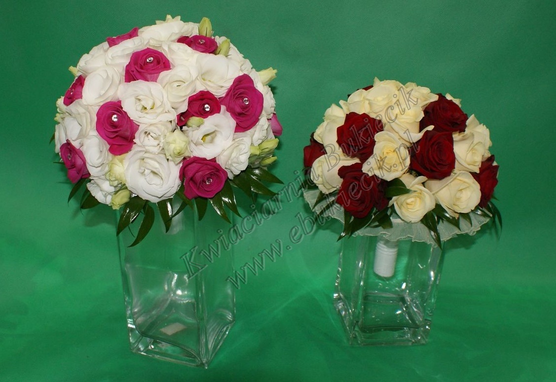 Przykłady bukietów ślubnych oraz ślubnych kompozycji jakie wykonujemy w naszym sklepie.